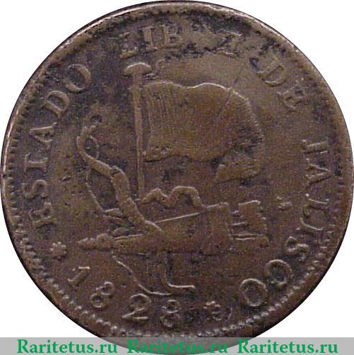 Соединенные Мексиканские Штаты (с 1810 г. по н/вр.), Мексиканская Республика (1824-1864 гг.), штат Халиско, глава: президент Гуадалупе Виктория. Монетный двор г. Халиско (Мексика). Регулярный выпуск.