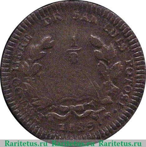 В центре, в окружении венка из дубовых и лавровых листьев, изображены: число 1/8 – 1/8 реала и раскрытая книга. Слева, сверху и справа вдоль канта надпись на испанском языке: «ESTADO LIBRE DE SAN LUIS POTOSI.», которая переводится как: «Свободный штат Сан-Луис-Потоси». Снизу вдоль канта, отделенный от надписи пятиконечной звездой, год выпуска 1859. По окружности канта рельефные элементы в виде зубцов.