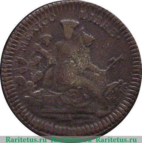 Реверс монеты ⅛ реала 1829-1859 годов Мексика