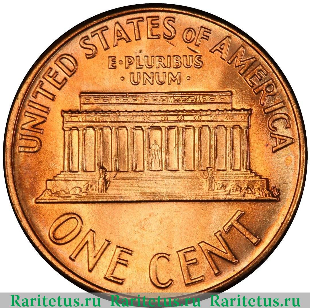 Мемориал Линкольна. Надписи: UNITED STATES OF AMERICA / E • PLURIBUS • UNUM • / ONE CENT.