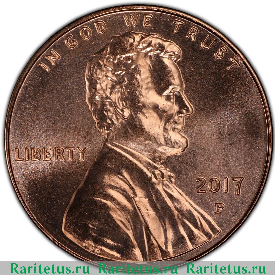 Аверс монеты 1 цент (cent) 2017 года P  США