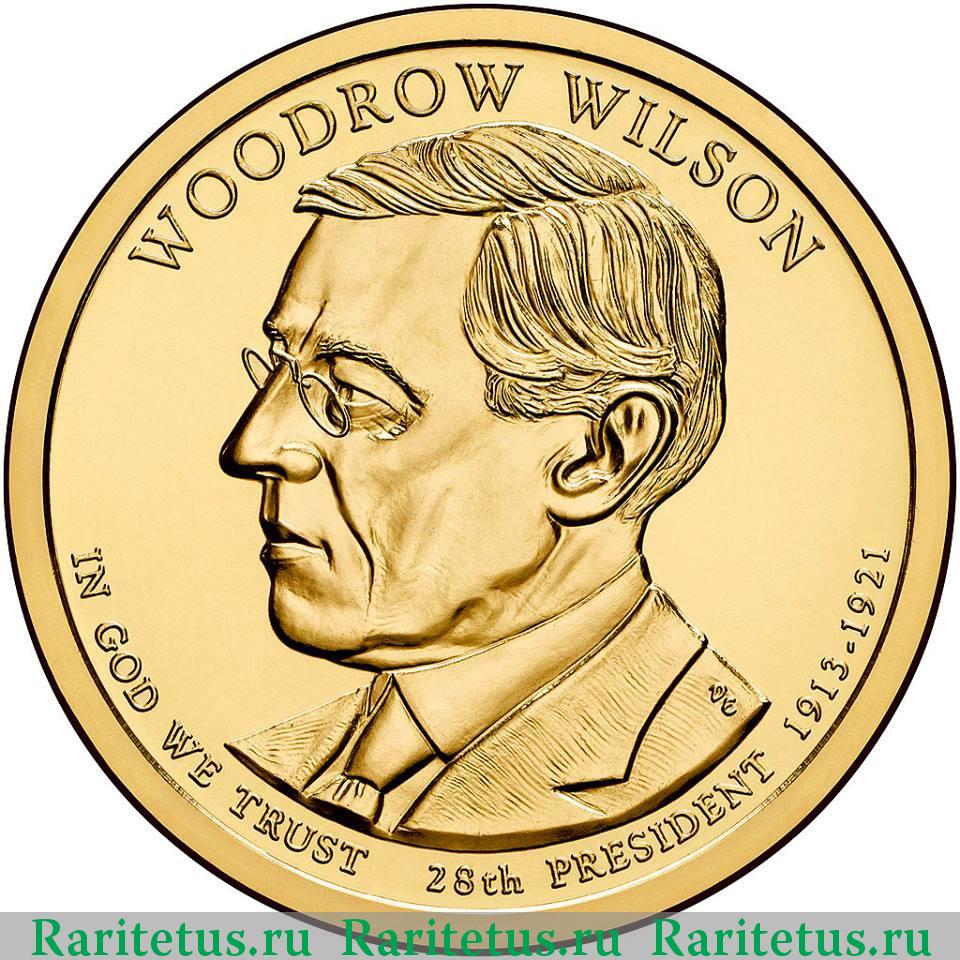 Аверс монеты 1 доллар (dollar) 2013 года P Вильсон США