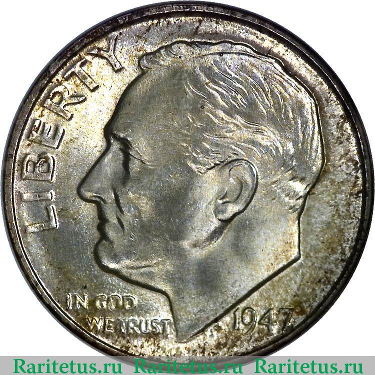 Аверс монеты 10 центов (дайм, one dime) 1947 года D США