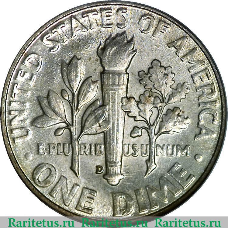 Реверс монеты 10 центов (дайм, one dime) 1947 года D США