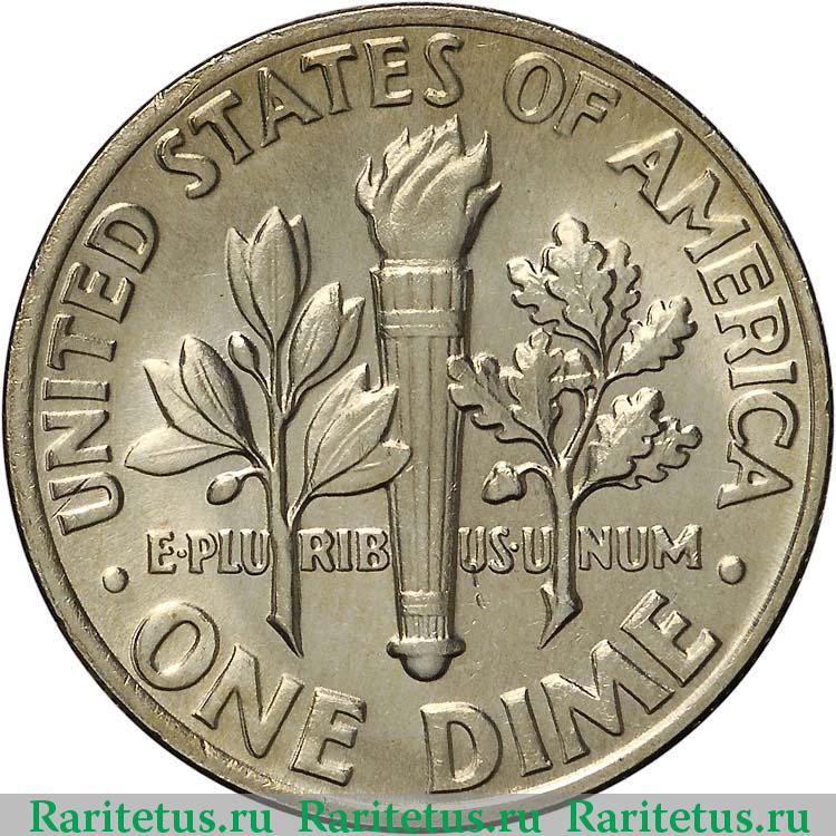 Реверс монеты 10 центов (дайм, one dime) 1977 года США