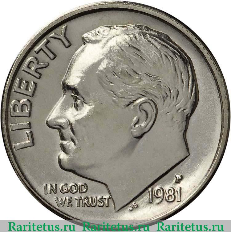 Аверс монеты 10 центов (дайм, one dime) 1981 года P США