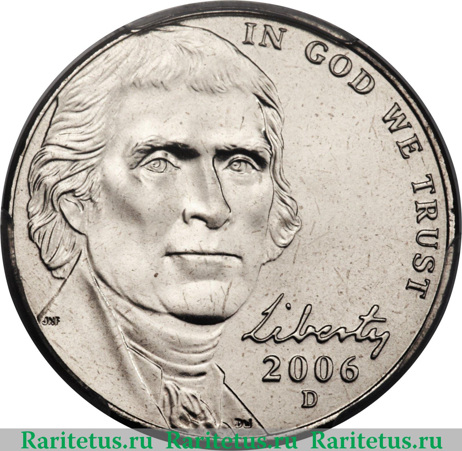 Аверс монеты 5 центов (cents) 2006 года D США