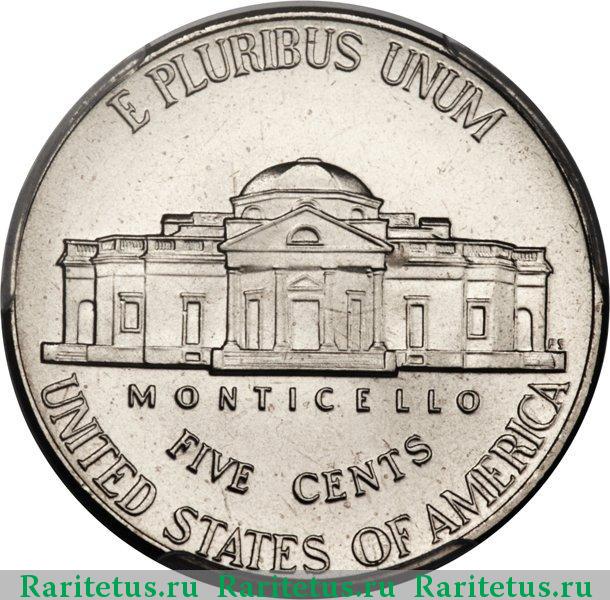 Изображение усадьбы Джефферсона Монтичелло (Monticello). Легенда: E PLURIBUS UNUM / MONTICELLO / FIVE CENTS / UNITED STATES OF AMERICA / FS.