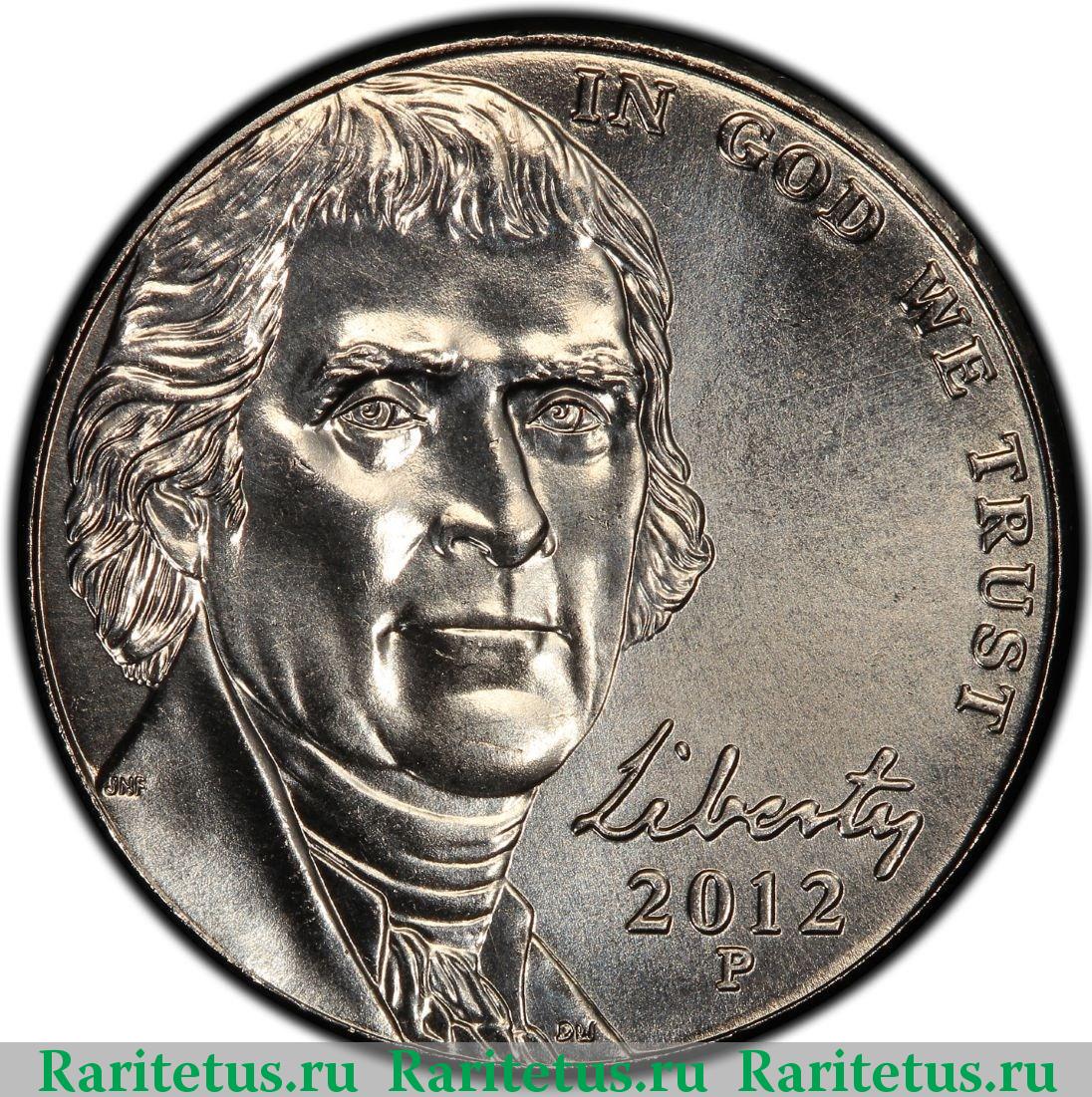 Цена на монету 5 центов (cents) 2012 года P США на сегодня, 21 октября 2025 года