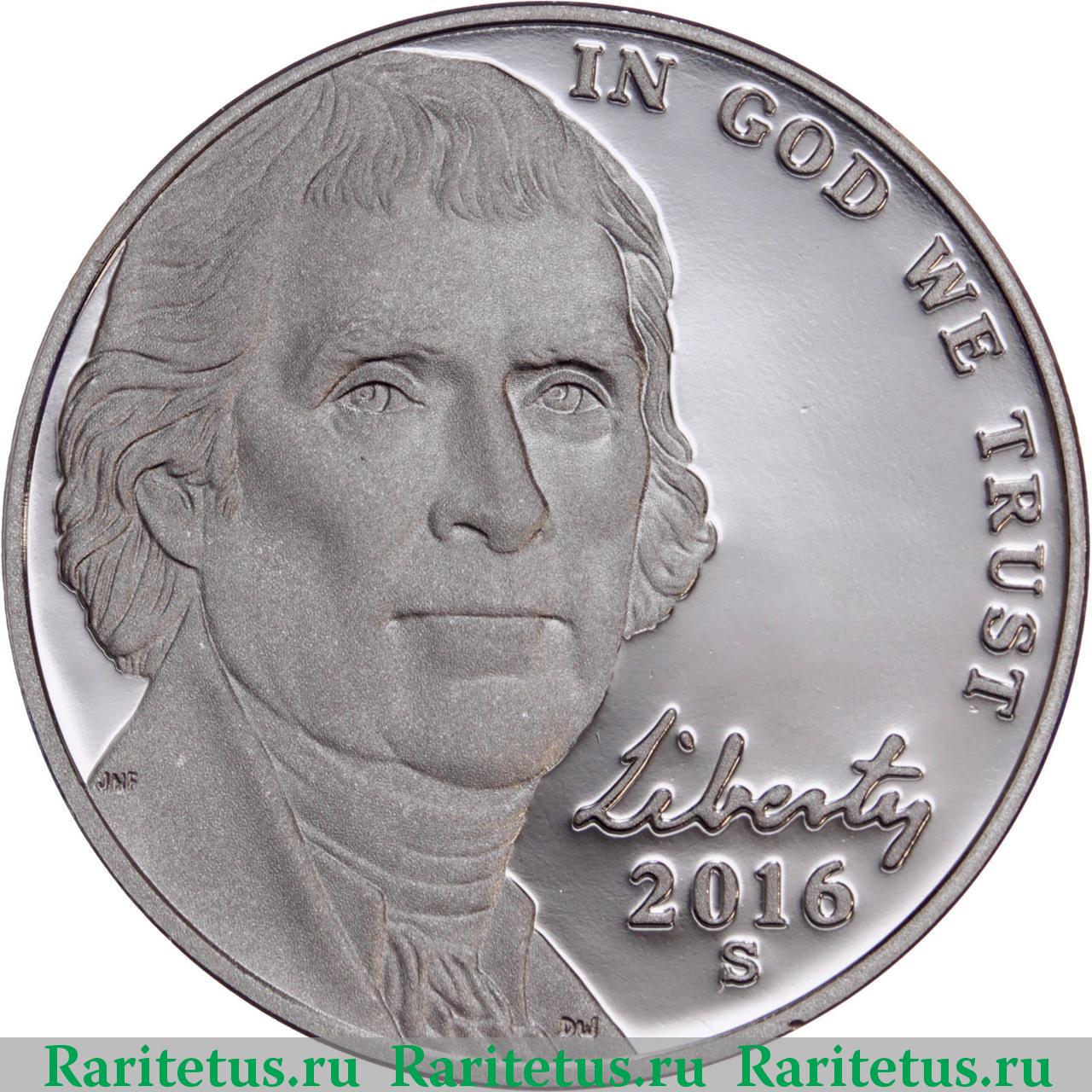 Аверс монеты 5 центов (cents) 2016 года S США proof
