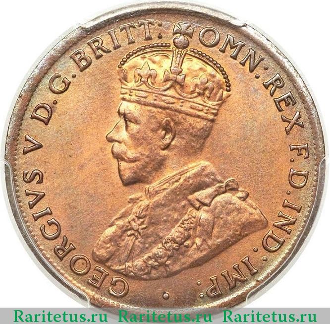 Аверс монеты 1 пенни (penny) 1920 года Австралия