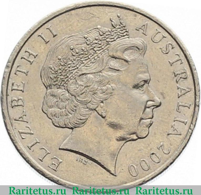 В центре профильный портрет вправо королевы Великобритании Елизаветы II. Слева вдоль канта надпись на английском языке: «ELIZABETH II» - Елизавета II, справа название страны и год выпуска: «AUSTRALIA 2000» - Австралия 2000.