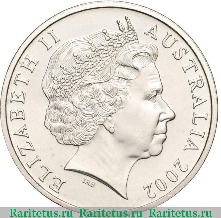 В центре расположен профильный портрет вправо королевы Великобритании Елизаветы II в короне. Слева вдоль канта имя монарха «Елизавета II» на английском языке «ELIZABETH II», справа название страны «Австралия» - «AUSTRALIA» и год выпуска «2002». Под срезом шеи монарха знак скульптора «IRB» - Ian Rank-Broadley.