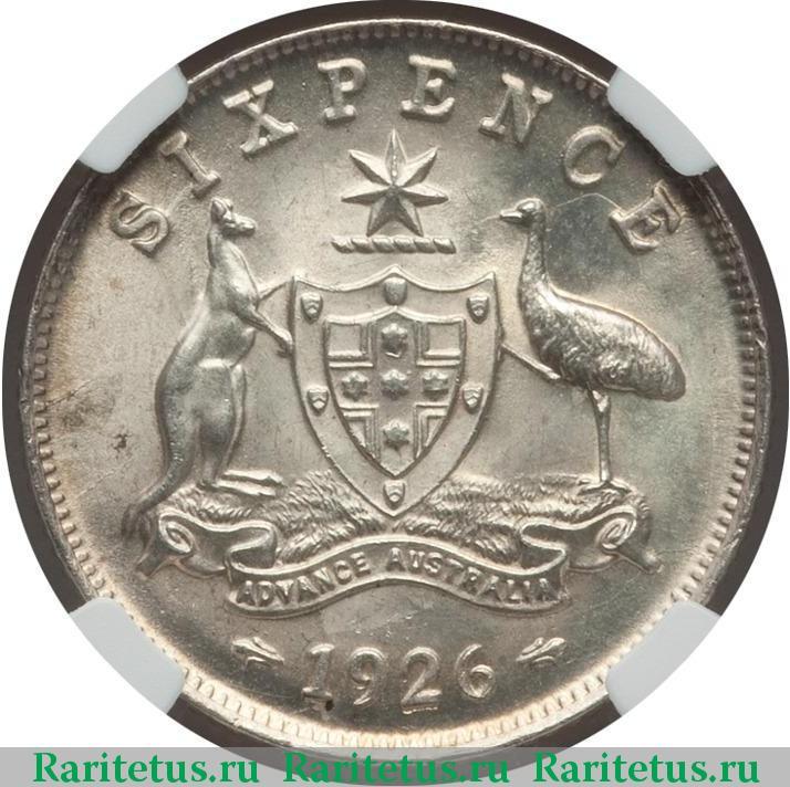 Реверс монеты 6 пенсов (pence) 1926 года Австралия