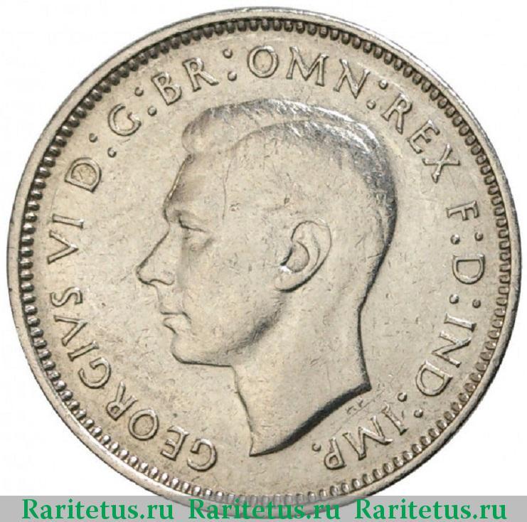 Аверс монеты 6 пенсов (pence) 1938 года Австралия