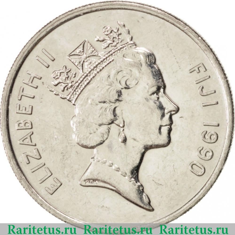 Аверс монеты 20 центов (cents) 1990 года Фиджи