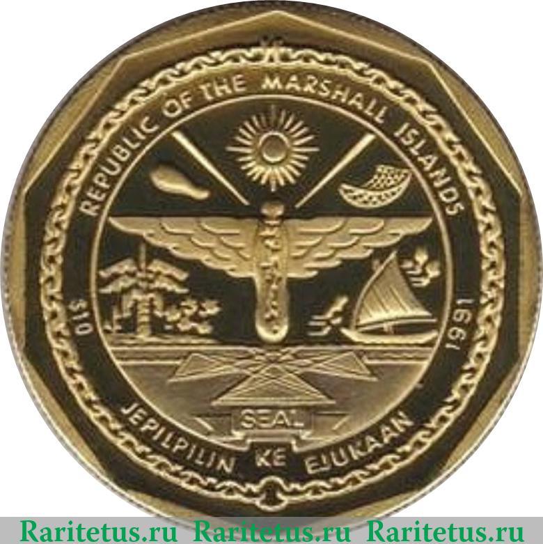 Реверс монеты 10 долларов 1991 года Маршалловы Острова