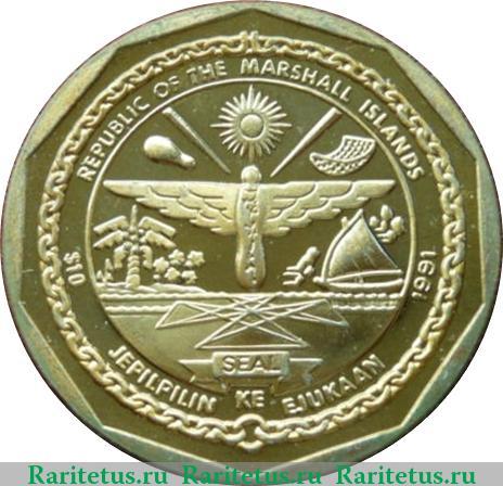 Аверс монеты 10 долларов 1991 года Маршалловы Острова