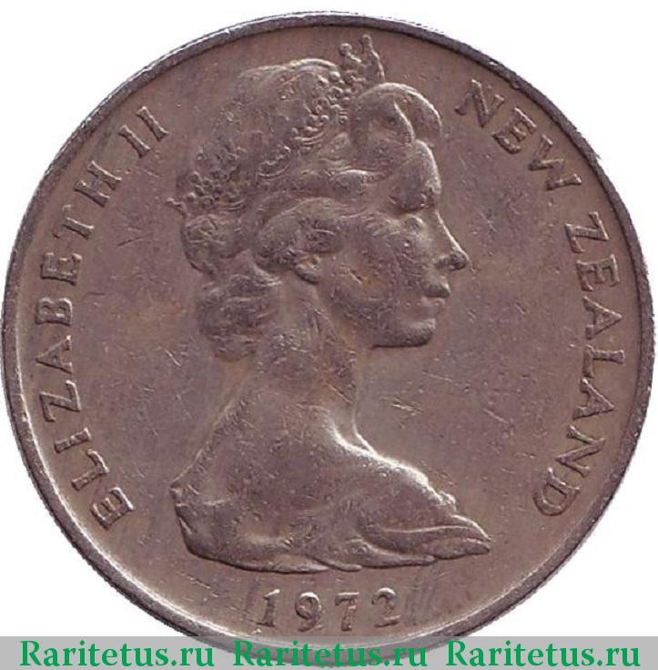 Аверс монеты 20 центов (cents) 1972 года Новая Зеландия