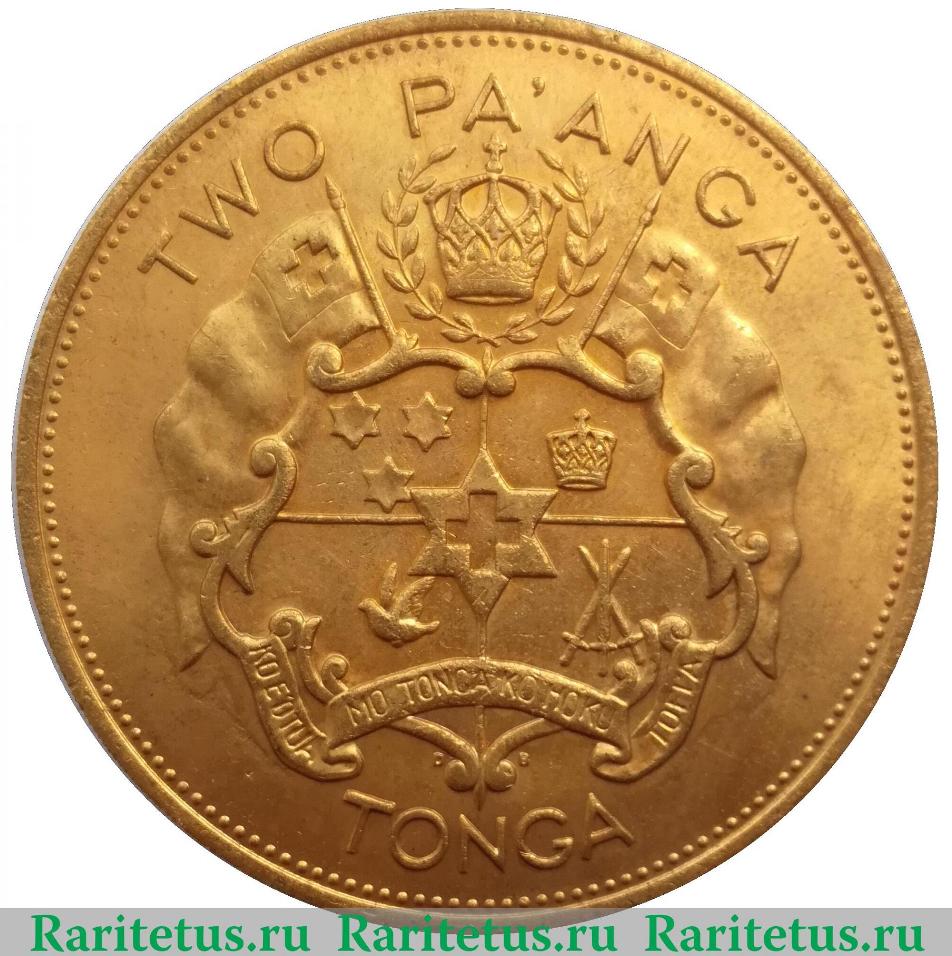 Реверс монеты 2 паанга 1968 года Тонга