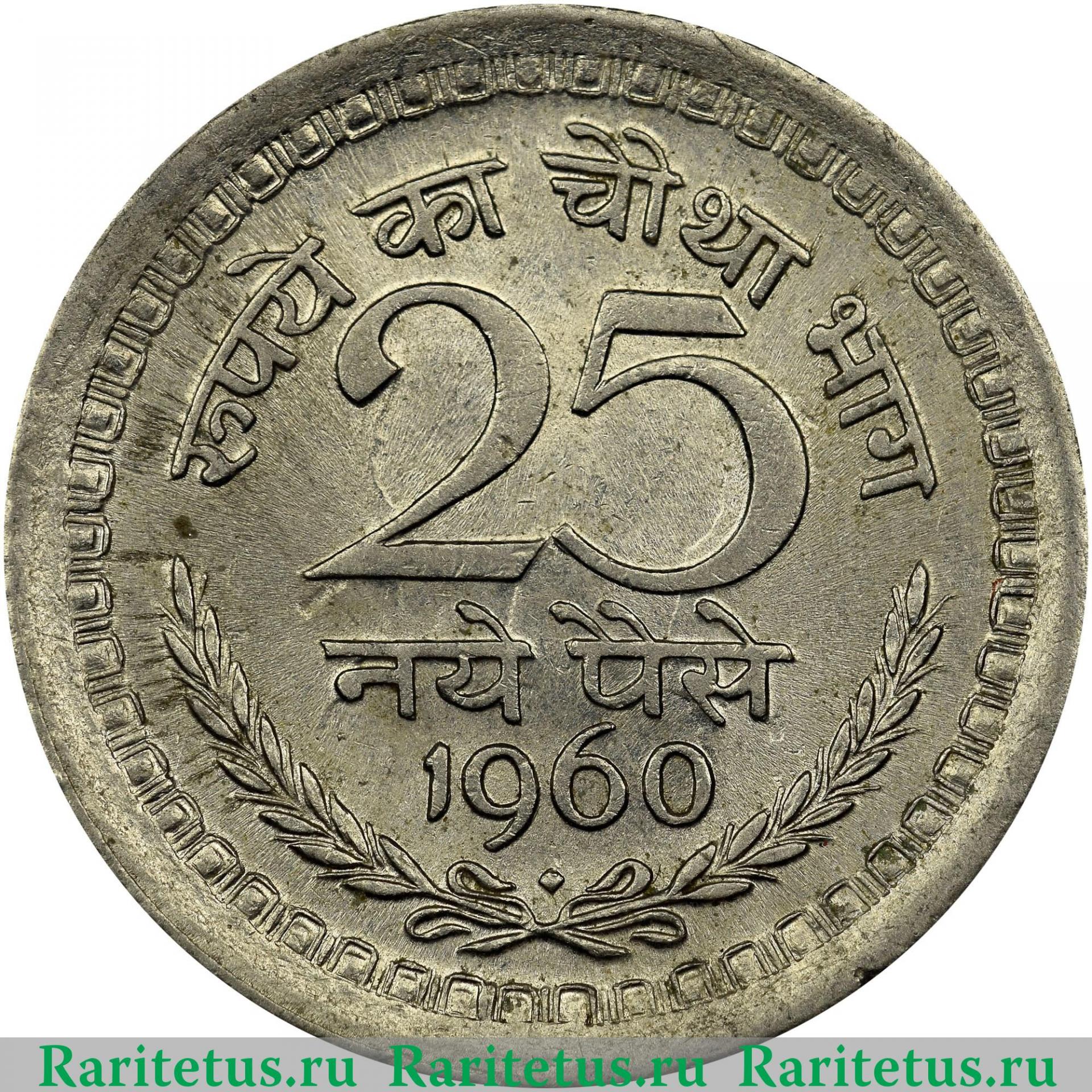 Цена на монету 25 новых пайс (nayer paise) 1960 года ♦ на сегодня, 31 октября 2025 года