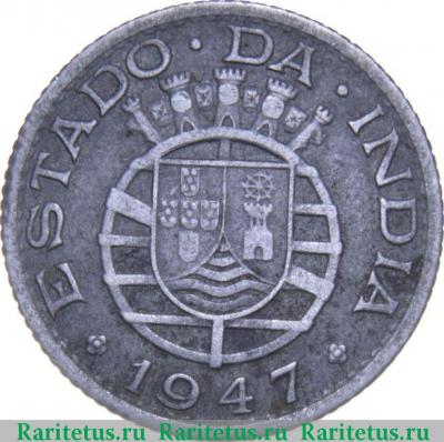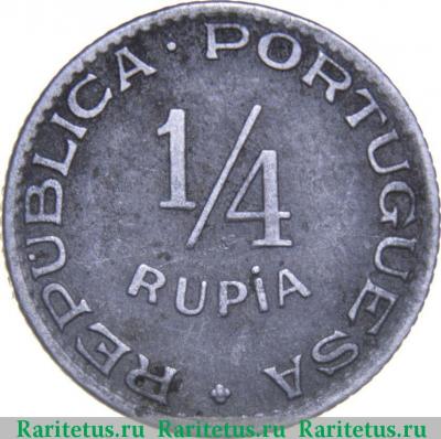 Аверс монеты 1/4 рупии (rupee) 1947 года Индия (Португальская)