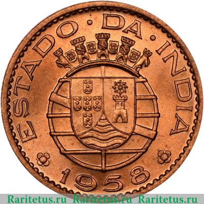 Реверс монеты 30 сентаво (centavos) 1958 года Индия (Португальская)