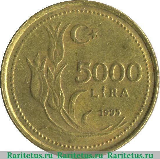 Реверс монеты 5.000 лир 1992-1994 годов Турция