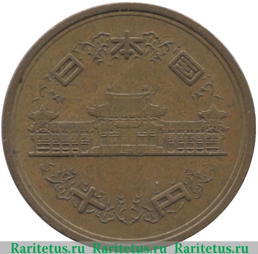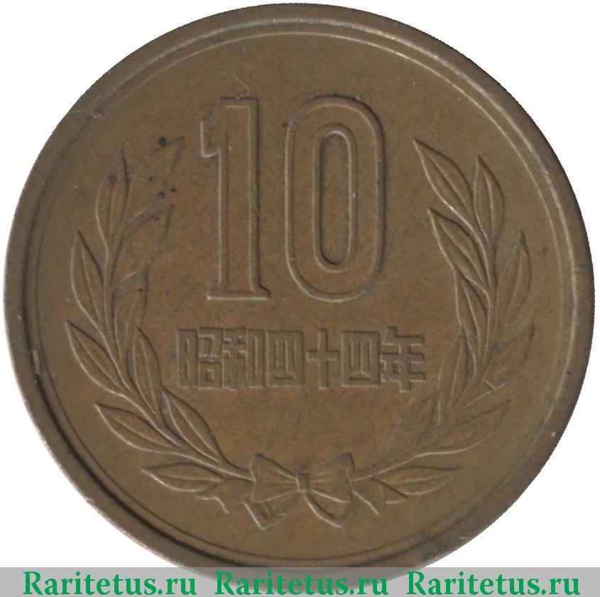 Реверс монеты 10 йен (yen) 1969 года Япония