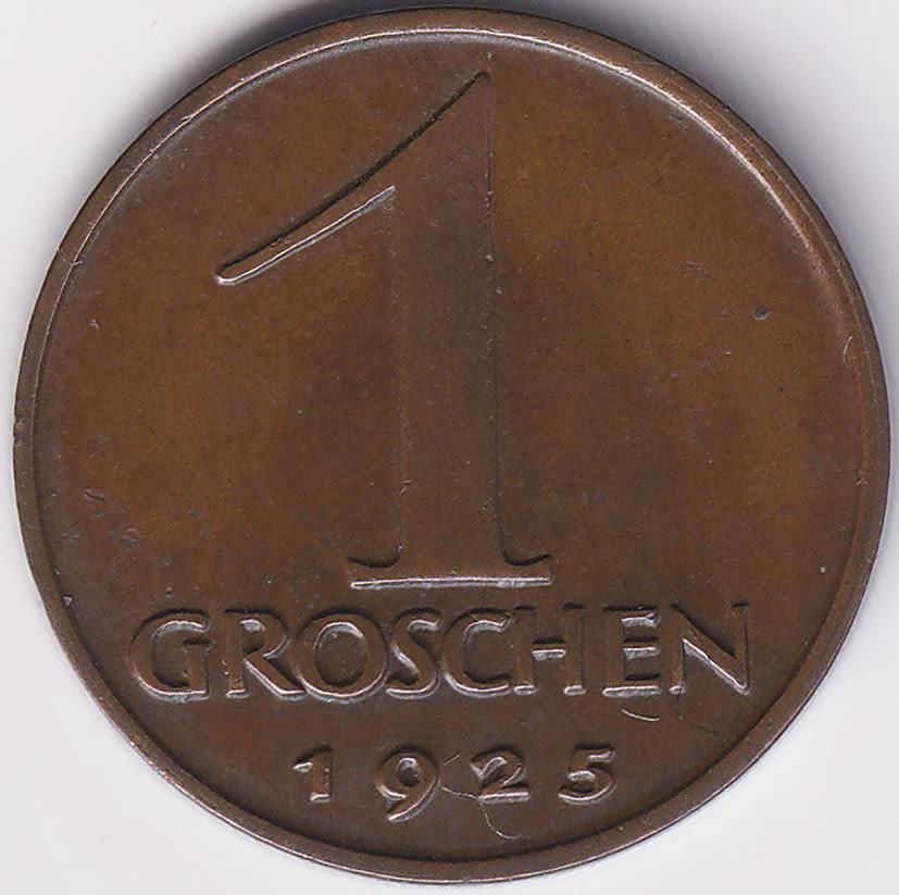 Аверс монеты 1 грош (groschen) 1925 года Австрия