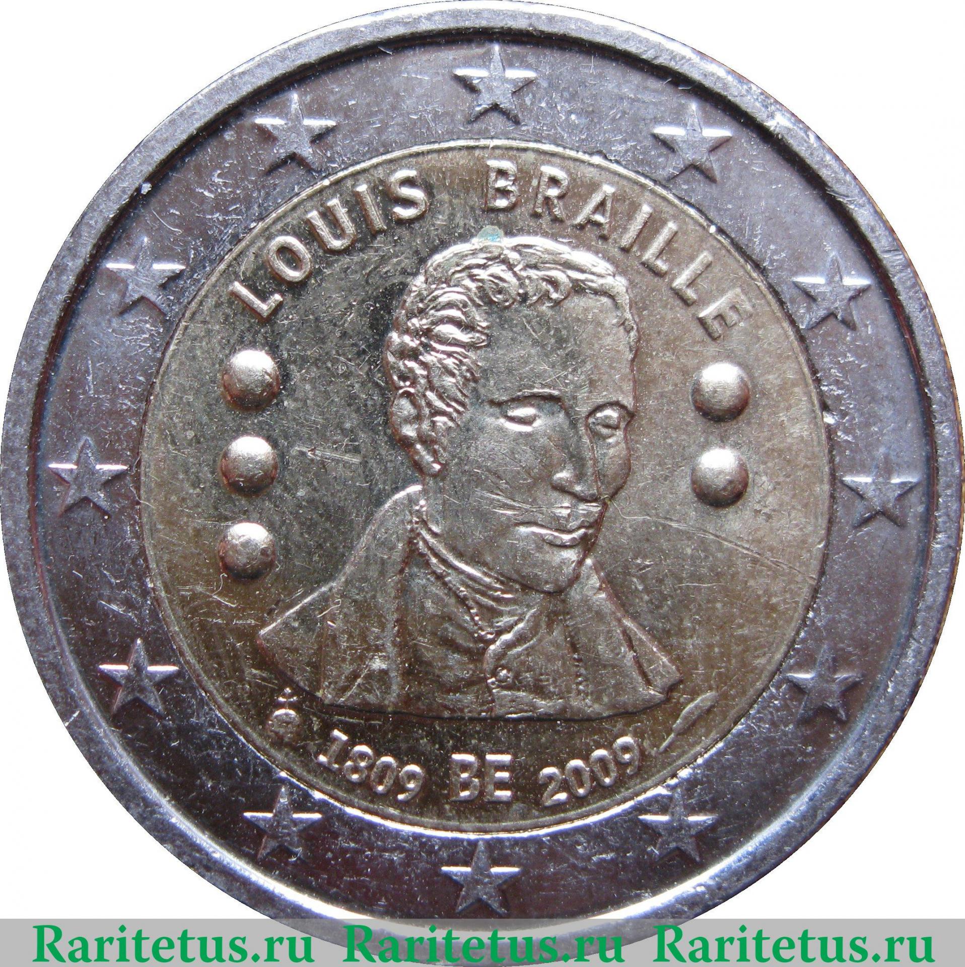 2 евро, 2009 год, Бельгия, 200 лет со дня рождения Луи Брайля