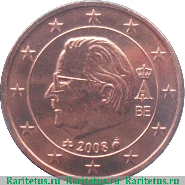 В центре, в круге, профильный портрет влево Альберта II. Под ним год выпуска: 2008, обрамлённый литерами Брюссельского монетного двора - головой Архангела Михаила и весами - знаком художника Ромена Коэнана. Справа от него монограмма Альберта II и литера «ВЕ», обозначающая название страны - Бельгия.. По окружности канта 12 пятиконечных звёзд, символизирующие 12 стран-членов Европейского Союза.