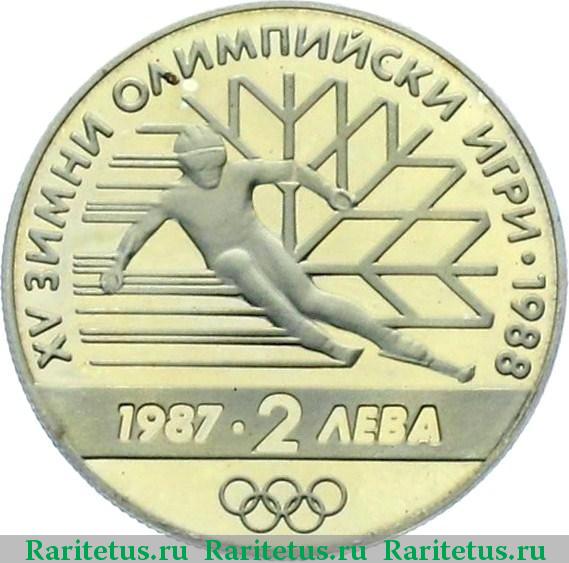 Реверс монеты 2 лева 1987 года олимпиада proof
