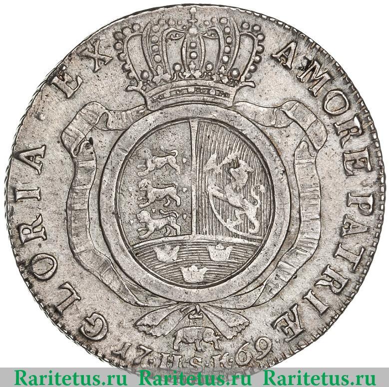 Цена на монету 1 спесие далер 1769 года на сегодня, 15 марта 2026 года