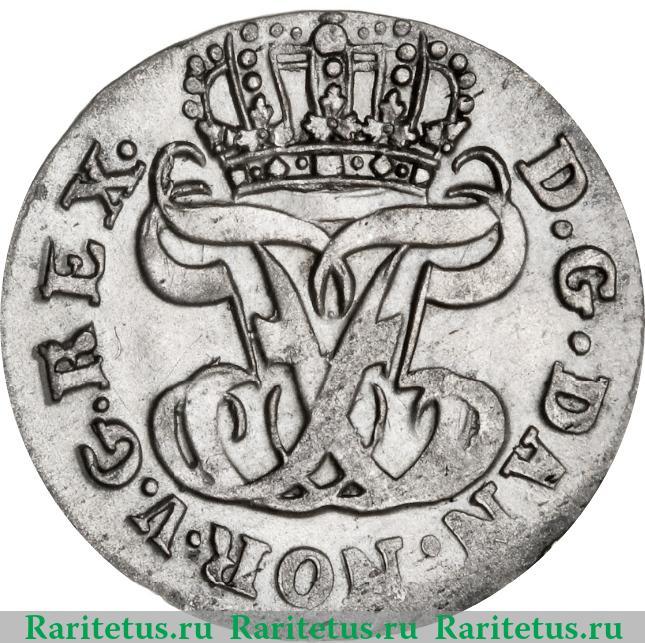 Аверс монеты 2 скиллинга 1750-1761 годов Дания