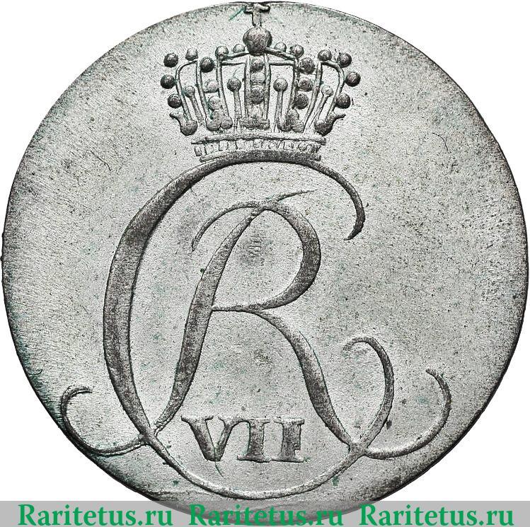 Аверс монеты 2 скиллинга 1801-1805 годов Дания