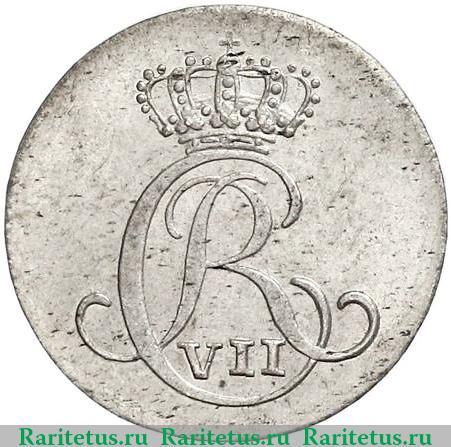 В центре изображена монограмма коронованного короля: сверху корона, под ней буква: "С" и римская цифра "VII", что означает: "CHRISTIAN VII" - "КРИСТИАН VII".