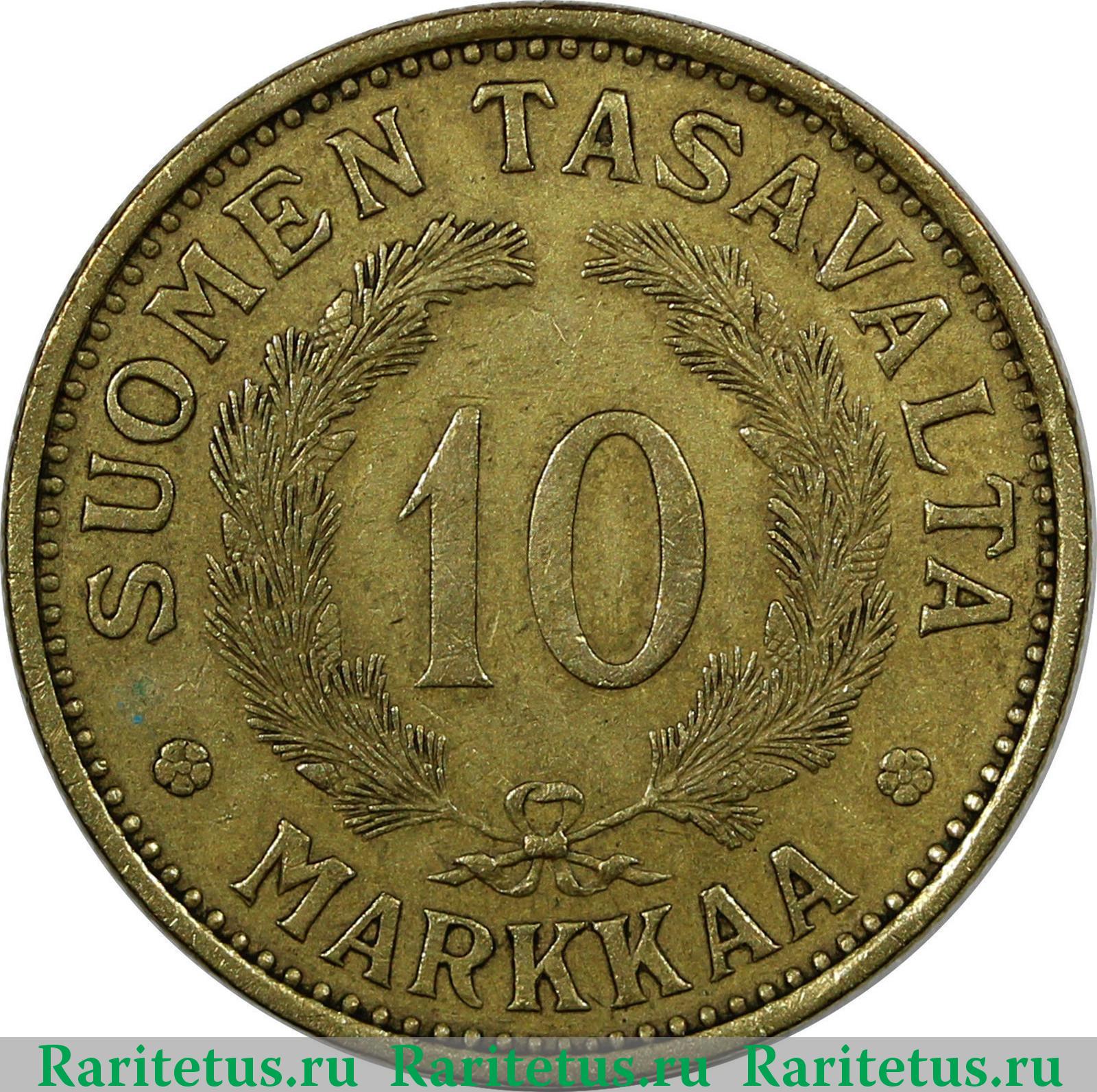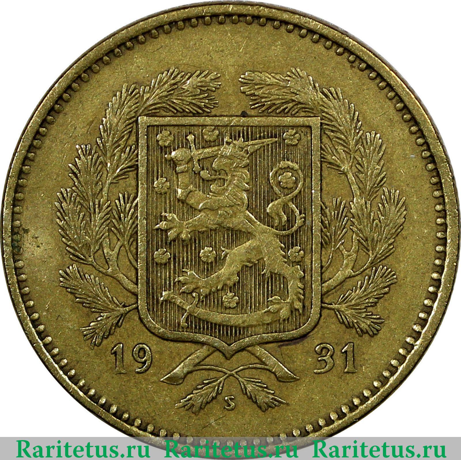 Реверс монеты 10 марок (markkaa) 1931 года S