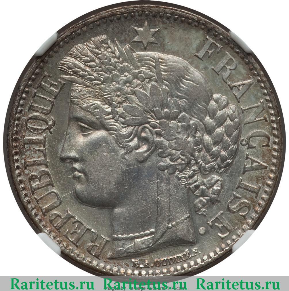 FRANCE. 2 Franc, 1851-A. NGC MS-65.KM-760.1; Gad-522. Sharply struck, fully lustrous and very attractive with old cabinet tone showing red, blue and Аукцион: Stack’s Bowers Состояние: MS65 (UNC) | 04.08.2017 |