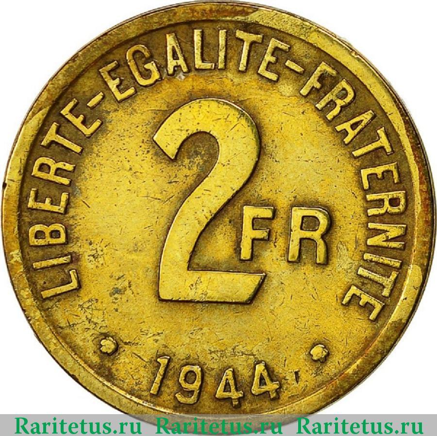 '2 франка (francs) 1944 Франция'