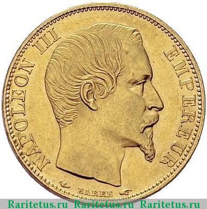 Аверс монеты 20 франков (francs) 1854 года Франция