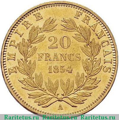 Реверс монеты 20 франков (francs) 1854 года Франция