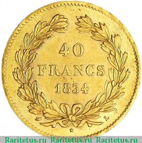 Реверс монеты 40 франков (francs) 1834 года Франция