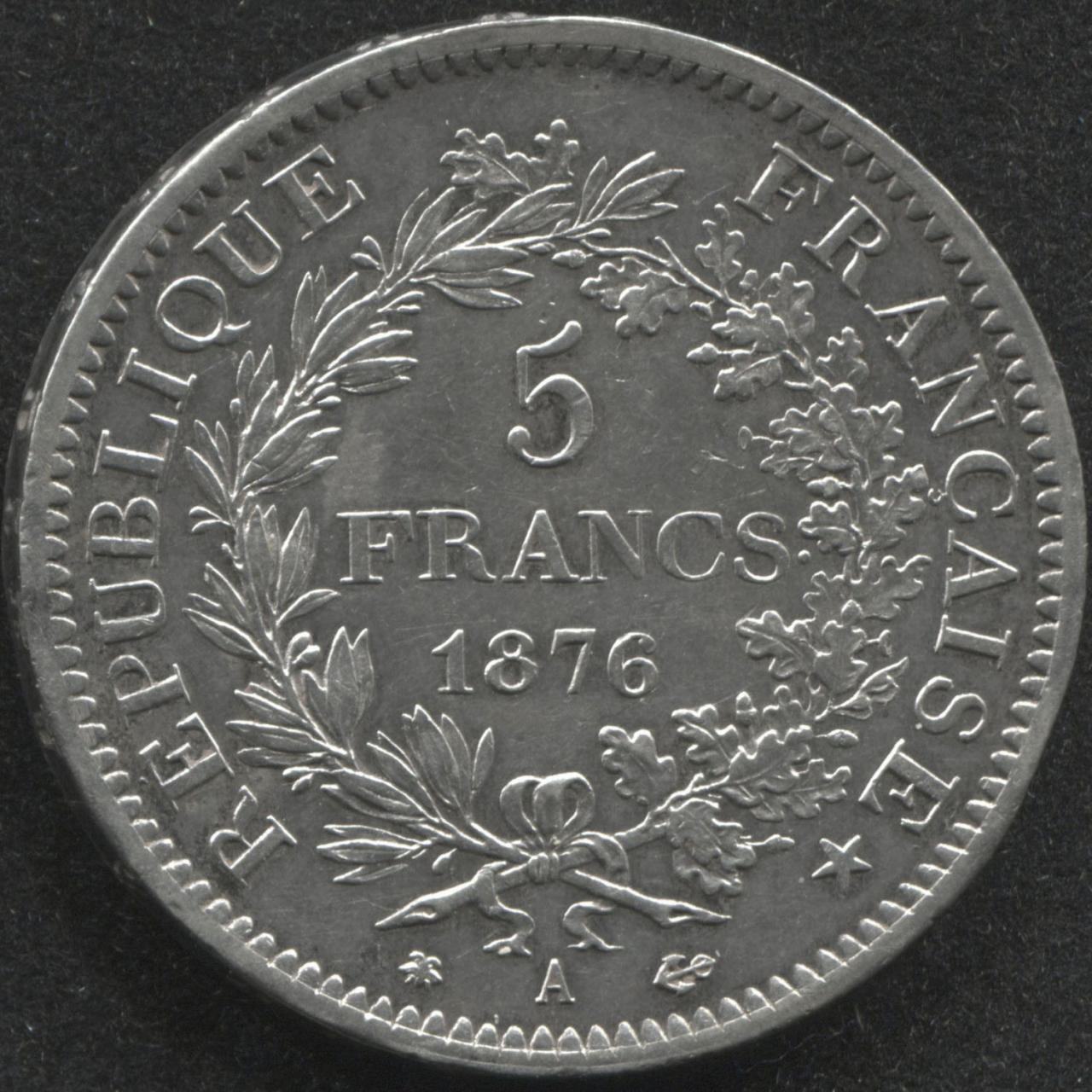 Реверс монеты 5 франков (francs) 1876 года A Франция
