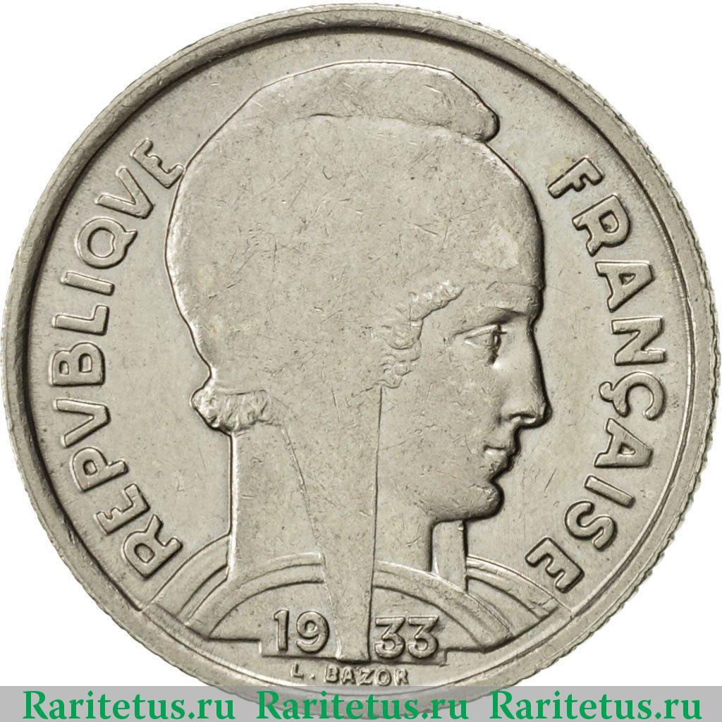 '5 франков (francs) 1933 лицо вправо Франция'