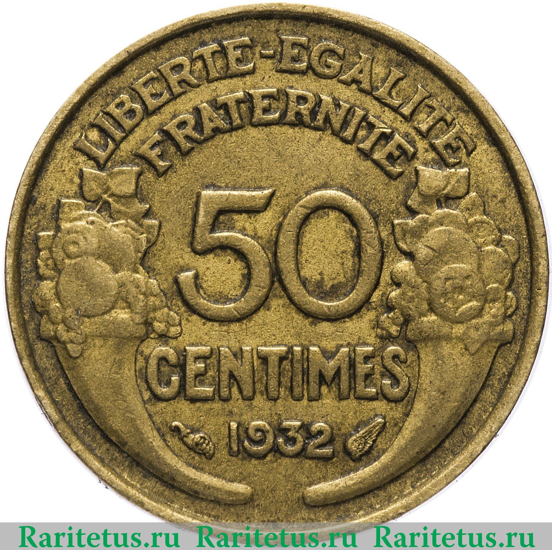 50 сантимов 1932 Франции,до 30.06 Аукцион: Lave Состояние: VF | 30.06.2016 |