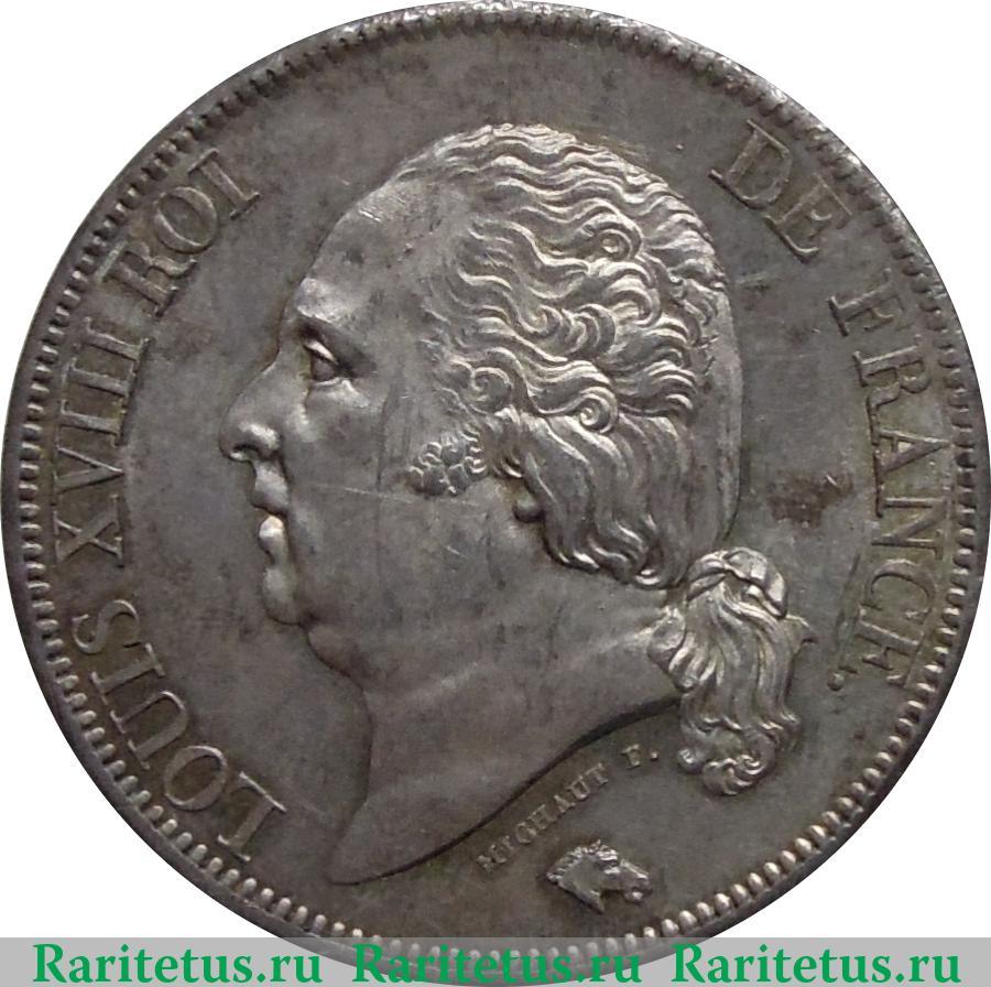 Цена на монету 5 франков 1816-1824 годов на сегодня, 22 января 2026 года