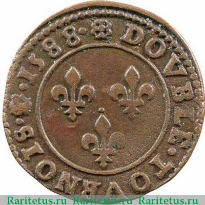Аверс монеты двойной турнуа (double tournois) 1588 года Королевство Франция