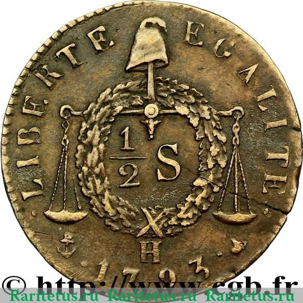 Реверс монеты ½ соль 1793 года Франция