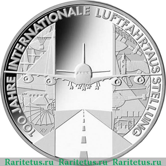 Цена на монету 10 евро (euro) 2009 года D авиакосмический салон Германия на сегодня, 14 апреля 2026 года